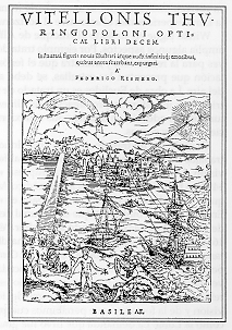 Vitello's exact birth-name and birthplace are uncertain. He was most likely born around 1230 in Silesia, in the vicinity of Legnica.[1] His mother came from a Polish knightly house, while his father was a German settler from Thuringia. He called himself, in Latin, "Thuringorum et Polonorum filius" — "a son of Thuringians and Poles." He studied at Padua University about 1260, then went on to Viterbo. He became friends with William of Moerbeke, the translator of Aristotle from Greek language into Latin. Vitello's major surviving work on optics, Perspectiva, completed in about 1270–78,[2] was dedicated to William. In 1284 he described the reflection and refraction of light.[3]