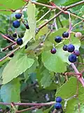 Common names for the grape are Arizona grape, canyon grape, and uva del monte.[2] It has historically been used as a food source by Indigenous peoples of the Southwest. Canyon grape can tolerate drought and cold temperatures. It grows in a variety of habitats including riparian zones and shady canyons.[3] It can hybridize with mustang grape, sweet mountain grape, and California wild grape where their ranges overlap.[4]