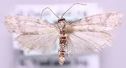 The wingspan is 12–18 mm.[3] Adults are on wing from June to August.