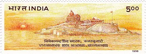 Vivekananda Rock Memorial is a monument and popular tourist attraction in Kanyakumari, India's southernmost tip.[1] The memorial stands on one of the two rocks located about 500 meters off mainland of Vavathurai, Tamil Nadu. It was built in 1970 in honour of Swami Vivekananda, who is said to have attained enlightenment on the rock.[1][2][3][4]