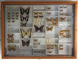 The Harvard Museum of Natural History, which now contains the Museum of Comparative Zoology, still possesses Nabokov's "genitalia cabinet", where the author stored his collection of male blue butterfly genitalia.[71][72] "Nabokov was a serious taxonomist," says museum staff writer Nancy Pick, author of The Rarest of the Rare: Stories Behind the Treasures at the Harvard Museum of Natural History. "He actually did quite a good job at distinguishing species that you would not think were different—by looking at their genitalia under a microscope six hours a day, seven days a week, until his eyesight was permanently impaired."[72]