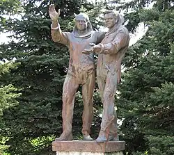 Czech astronomer Antonín Mrkos discovered an asteroid in September 1978 and named it 2552 Remek after the cosmonaut.[34] Remek is featured in a 2009 independent comedy film called Osadne about three residents from Osadné that seek out Remek at his office in Brussels to help tourism in their town.[35] Sculptor Jan Bartoš created a statue of Remek and Gubarev, which is located at Háje metro station, formerly known as Kosmonautů (meaning [station] of the cosmonauts) until 1990, in Prague.[36] Another statue of Remek is located in Košice, Slovakia.[37]