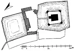 This is a three-story building on a square plan, located on a walled island. This island is formed by quarry stone walls, which measure 30 x 30 meters and at the four corners still contain the lower layers of round towers. It constitutes the remnant of the former castle. Outside the castle island are the farm buildings of the forecourt, which are made of quarry stone. One of them has wall anchors showing the year 1781.[3]