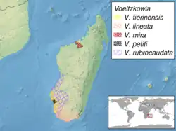 The genus Voeltzkowia is endemic to Madagascar.[1]