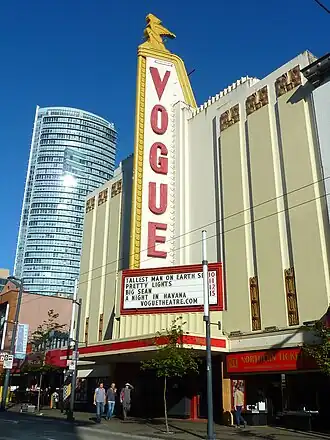 Vogue Theatre is an Art Deco / Art Moderne styled building originally built as a movie house, and currently used as an event venue for the performing arts. Situated on Vancouver’s “Theatre Row", the building was designated as a National Historic Site of Canada in 1993.[1]
