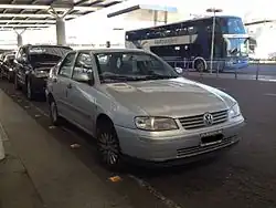 The hatchback underwent a major facelift for the 2000 model year, while the saloon and the estate received only minor refinements.[5] It now had a more different exterior and interior design than the also facelifted Seat Ibiza.[6] At the end of 2001, it was discontinued and replaced by its successor, the Volkswagen Polo Mk4, but it continued production in Argentina, where the saloon was facelifted in 2004,[7] receiving the exterior design applied to the facelifted Seat Córdoba and the interior of the facelifted Volkswagen Polo.[8]