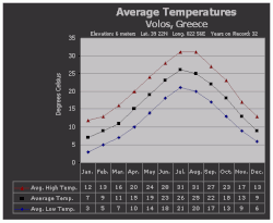 - ^ "Volos Climate Normals 1958–2020". Hellenic National Meteorology Service. Retrieved 18 June 2014.