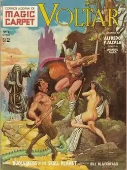 - ^ Per Arndt, "The Warren Magazines", artist "[Alfredo] Alcala's Voltar character had been invented in the Philippines back in the 1960s.... He debuted in America in Magic Carpet #1 (1977) with scripting by Manuel Auad."