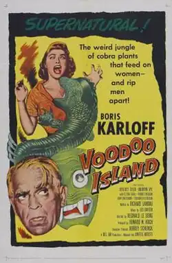Voodoo Island is a 1957 American horror film directed by Reginald Le Borg and written by Richard H. Landau.[2] The film stars Boris Karloff, with a cast including Elisha Cook Jr., Beverly Tyler and Rhodes Reason.[3] It is set in the South Pacific and was filmed on Kauaʻi, Hawaii back to back with Jungle Heat. Adam West appears in a small pre-"Batman" uncredited role (his first film role).[1]