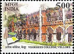 Voorhees College is a college in Vellore, Tamil Nadu, India. It was founded in 1898 as Arcot Mission College, when Arcot Mission High School was amalgamated to the University of Madras. The college is named after its benefactors, Mr. and Mrs. Ralph and Elizabeth Voorhees of the Reformed Church in America.[1] The College was earlier known as Ralph and Elizabeth Voorhees college when it was a Co-educational institution. In the late sixties towards the end of the tenure of Dr. A.N. Gopal, the then principal, the college stopped admitting women students and dropped the names Ralph and Elizabeth and became known as Voorhees College. The college began offering master's level courses in 1975. The College is managed by the Church of South India, Diocese of Vellore. The Chairman of the College is the Bishop of Vellore, and the motto is "In vain without God."