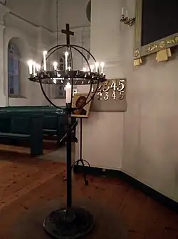 Within the Nordic Lutheran churches of Sweden, Norway, Denmark and Finland, all High Church Lutheran denominations, the use of votive candles is commonplace and most, if not all, churches and chapels will have a votive candle holder (Swedish: Ljusbärare). These are somewhat similar to the Eastern Orthodox type, usually a round metal frame with several sockets surrounding a central, larger candle on which to light the votive candles. As in Eastern Orthodox Churches, Nordic Lutheran votive candles are also long and thin.