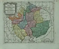 This city was founded in 1795 on the site of the Cossack settlement of Sokoly after the liquidation of the Zaporozhian Sich.[4] Previously located in Novomyrhorod, in 1796 the administration of the newly created Imperial Russian namestnichestvo was transferred to Voznesensk. Creation of the new territory occurred in place of the Ochakov Land (Oblast), following the 1788 conquest of the Ochakov Fortress (Özi Cale) as well as liquidation of the Zaporozhian Sich earlier in 1775.