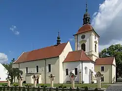 - ^ "Areál kostela sv. Vavřince se dvěma sochami" (in Czech). National Heritage Institute. Retrieved 2023-06-12.