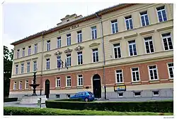 Vrhnika became a market town and was among the wealthiest towns in Carniola[7] up to the early 18th century, when it started to lose importance. Nevertheless, it remained one of main transportation junctions in Inner Austria because of its strategic location on the crossroads between the trade routes from Trieste to Vienna and from Rijeka to Klagenfurt.[8] The development of the town was strongly impaired by the construction of the Austrian Southern Railway in the 1840s, which bypassed it. From then on, it started losing importance, becoming a satellite town of Ljubljana, which it has remained up to this day.