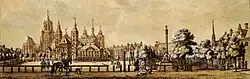 In the 14th and 15th centuries, there were a number of famous inns in Vrijthof, mainly situated near the northeast corner. This is also where in 1292 the original perron was erected, the symbol of the jurisdiction of the prince-bishop of Liège. Maastricht however was a condominium and had double jurisdiction. The symbol of the duke of Brabant (a scaffold!) stood near the northwest corner.[2] At times, the square was used for public executions (before the new town hall was built at Markt). In 1408, after the suppression of a rebellion by prince-bishop John of Bavaria, one of the rebellious mayors of Liège was beheaded in the square. In 1485, William I de La Marck, known as the "Swine of the Ardennes", was executed in Vrijthof. In 1535, 15 heretics Anabaptists were burnt at the stake.