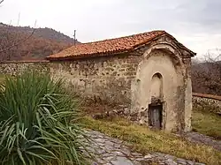 - Church of St Nicholas. It is situated at 2 km to the south of the village in a deep and hardly accessed dingle. It is a small one nave and one apse church without narthex and with a shallow arc on the western facade. Its dimensions are 4,43 x 2,75 m. The vault is semi-cylindrical. It was built of stones and white plaster. The roof is covered with stone plates. The church is half-dig in the ground. The whole interior and the arc on the western facade are painted but only fragments of the frescoes have remained. The church was constructed and painted in the 16th century. It is a monument of culture.
