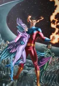 Vulcan has used his powers to produce light, heat, force, and electricity, as well as warp or disable large amounts and different types of existing energy sources, tap into and suppress mutant energies, survive in the vacuum of space, and fly. Outside a planetary atmosphere his flight speed can even reach near the speed of light. He can track energy signatures over vast interstellar distances, as demonstrated when he located a trio of starships.[38] He is able to go without food for long periods by directly absorbing energy, and can generate protective force fields for interstellar travel. He can manipulate electricity within a person's brain and use the powers of others by manipulating their own energy sources, although he needs to be in their presence to achieve this. The exact limits of his power replication abilities are unknown, but he was capable of utilising Marvel Girl's telepathy without her consent. Vulcan also possesses the capability of solidifying energy into solid shapes, in effect simulating telekinesis.[38][39]