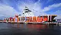 The shipyard was founded in 1948 and since then has built more than 200 different vessels with deadweight up to 12,000 tons. The total displacement of the built vessels is over 1,550,000 tons.[2] At present the shipyard is able to build different type of vessels with deadweight up to 15,000 tons. When the shipyard builds bigger ships the hulls of the ships will be assembled at the semi-submersible barge Atlant built at the Vyborg shipyard specially for implementation of the Project 21900M icebreaker order. To launch the icebreaker the barge was towed to the deepwater area of the Vyborg Bay.[3]