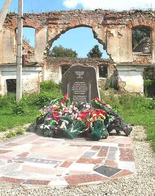 In 2010, a monument was erected to commemorate the victims of the Jewish genocide in Vysokaye, located on Frunze Street near the ruins of an ancient synagogue.[9][10]