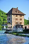 The Wörth Castle (German: Schlösschen Wörth, Swiss German: Schlössli Wörth) is a fortification in the municipality of Neuhausen am Rheinfall in the canton of Schaffhausen, Switzerland, located on a small island in the Rhine Falls' basin.