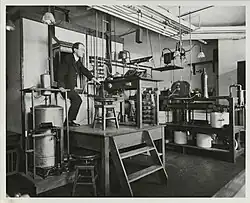 Wilbur Atwater returned to Wesleyan as a professor of chemistry in 1873 and remained there until his death in 1907.[9] Both he, and his mentor from Yale, Samuel Johnson, were proponents of bringing organizations to the United States similar to the agricultural experiment stations they saw in Europe.[10][11] Atwater even described the German agricultural experiment stations in an 1875 report to the Department of Agriculture.[12] To persuade the Connecticut legislature to appropriate money for a station, Orange Judd donated funds and Wesleyan offered laboratory facilities and Atwater's services on a part-time basis.[8] Through their work and a $5,600 contribution from the Connecticut legislature for a two-year trial period, the first agricultural experiment station was created in the United States.[5][13]
