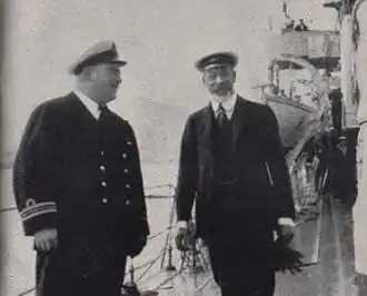 Lieutenant-Commander Beckett & King George V aboard HMS Vendetta, April 1925