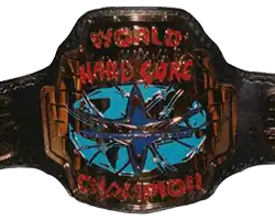 The World Championship Wrestling (WCW) Hardcore Championship was a title in World Championship Wrestling (WCW).[1] The title was defended in Hardcore matches, in which there were few rules and restrictions and weapons were allowed. Eventually, the rules were changed so that matches began in the backstage area but would only end by pinfall in the ring, but later were changed back to 'Falls Count Anywhere' rules. The belt was created in response to the growing popularity of hardcore wrestling in North America.