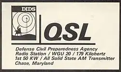 WGU-20 was an emergency government civil defense preparedness radio station in Chase, Maryland, United States, operated by the United States Defense Civil Preparedness Agency in the 1970s.