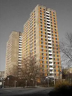 WHH GT 18 is a standard residential high-rise building type in East Berlin. It was developed by architects Helmut Stingl and Joachim Seifert between 1969 and 1971 using large panel construction for mixed-use housing in Berlin.
