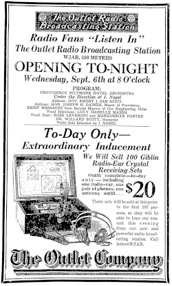 - ^ WJAR (advertisement), Providence Journal, September 6, 1922, page 12.