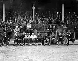 From 1917 to 1919 the Hilltoppers didn't compete in football from due to World War I. In 1920, L. T. Smith, whose name bears the Hilltoppers' home stadium, took the reins and coached the team for two seasons. From 1922 to 1928, the Hilltoppers saw their first success as Coach E.A. Diddle took over the football program for seven seasons leading them to four winning seasons while also coaching the Western Kentucky Hilltoppers basketball team. Diddle, who was a dual-athlete himself, encouraged his players to participate in multiple sports so they could stay in shape. His first team set a school record for wins that would stand for 41 years and his last team claimed to be state champions.[3] When he retired from coaching football in 1928, Diddle posted a record of 38–24–2. The Hilltoppers outscored opponents 171–7 in Diddle's final year of coaching the program. After Diddle left the football program to focus on coaching basketball, WKU football went through a series of instability in coaching but also a series of 9 winning seasons.