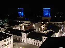 The first forced labourers, Poles, were probably brought to the city in early 1940, whereas Allied prisoners of war were brought to forced labour in the city probably since 1941.[22] Several thousands POWs, Serbian, British, Italian, Belgian, Soviet, Polish, French and others, were held in various labour camps in the city,[23] including subcamps of the Stalag VIII-A and Stalag VIII-B/344 POW camps.[24][25] There were also several other forced labour camps, for Poles, Jews, Ukrainians, including camps solely for women,[26][27] two subcamps of the Gross-Rosen concentration camp, intended for Jews, located in the present Gaj and Książ districts,[28][29] and a Nazi prison.[30] There are known cases when Polish civilian workers gave food to starving Soviet prisoners of war.[31] The forced laborers made several attempts to escape, and those caught were either beaten by the Gestapo, sent to the Gross-Rosen camp or murdered.[32] The camp in Książ was dissolved in February 1945, and its prisoners were sent on a death march towards Trutnov in German-occupied Czechoslovakia.[33]