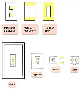 - ^ a b c d e f g h i j k l m n o p q Gupta, Rupa Raje (2007). Wada of Maharashta, an Indian courtyard house form (phd thesis). Cardiff University.