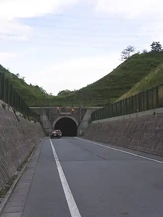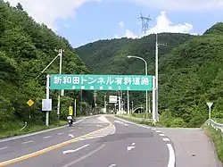 Shin Wada Tunnel the distant of which is 14,777 m that has belonged to the Shin-Wada Tunnel Toll Road since 1978. Since 1 April 2022, a driver is able to pass through the former toll road without toll tickets,[5] so the road which runs over this tunnel has been gone free to pass though since 1 April 2022.[6][7]
