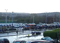 Middlewood was chosen as the northern terminus of Sheffield Supertram and opened in October 1995. The terminus is an off-road single platform type and was built on old allotment land at grid reference SK326911 on Middlewood Road. There is a park and ride facility, originally with 200 parking spaces, it was enlarged to 350 spaces in October 2007. The system incorporates a SupertramLink bus service which connects to Stocksbridge, Deepcar, Wharncliffe Side and Oughtibridge. The park and ride is well used by commuters from these areas.[12]