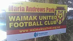 Welcome sign to Maria Andrews Park, one of the club's home pitches