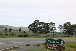 The Weka Pass Railway has its base in Waipara, and runs on 12 kilometres of track between there and Waikari over the former route of the Waiau Branch, a branch line railway that diverged from the Main North Line and ran to Waiau.[4] The Glenmark station is based in Waipara.
