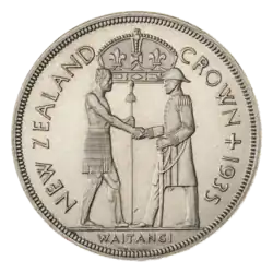 - ^ "N.Z. Waitangi Crown 1935". New Zealand Numismatic Journal. 10 (1): 291–292. March 1960.