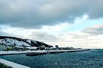 Wakkanai has a humid continental climate (Köppen: Dfb) typical of Hokkaido but with strong influence of the ocean as island portions near the great land masses (such as the smaller islands of Nova Scotia),[7] with cold winters, warm summers and generally heavy precipitation from the Aleutian Low, whose winds hit the city direct from the Sea of Japan but with strong oceanic influence (46 °F). The winter is cold enough not to fall in a maritime climate (Cfb) and the summers although very mild for typical climate is warm enough not to fall into a subarctic climate (Dfc), both in the classification of Koppen.[8] The mean annual temperature, at 6.8 °C (44.2 °F), is the second lowest for a significant population centre in Japan after Nemuro. Snowfall at 6.6 metres (260 in), the third highest for a big city in Japan after Asahikawa and Aomori and one of the highest anywhere in the world. For comparison, Nain in Canada receives 187 inches (4.7 m) of snow.[9]