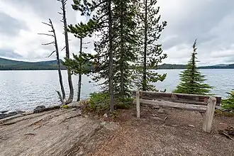 The lake is located in Lane County at an elevation of 5,414 feet (1,650 m) above sea level.[1] Access is via Forest Service Road 5897 from Oregon Route 58 approximately 18 miles (29 km) east of Oakridge. The forest road travels 12 miles (19 km) to the lake.