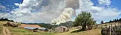 The Walker Ranch is a historic ranch in Boulder County, Colorado. The ranch was built by James A. Walker, who first settled in the Boulder area in 1865. Walker and his family initially lived in a log cabin on the ranch, which was built in 1865. In 1881, Walker and his family built and moved to a new ranch house. Walker engaged in a number of business ventures on the ranch and leased parts of the ranch to other businessmen, and the enterprises which took place on the ranch represent many of the region's industries at the time. Walker mainly raised cattle and milled lumber on the property, and an English firm mined gold using a cyanide mill; payments from the latter operation allowed Walker to eliminate his debt and purchase additional land for the ranch. Of the remaining historic buildings on the ranch, eleven are from Walker's homestead and his ranching operations, fourteen were part of Walker's sawmill operations, and fourteen are related to the cyanide mill. The ranch also includes five archaeological sites; three of these are remnants of aboriginal settlement in the area and two of these are Arapahoe sites, including a site Walker may have shared with the Arapahoe when he first came to the area.[2]