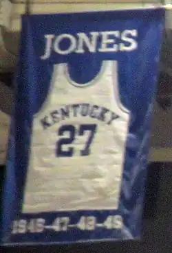 He holds the unique distinction of being an All-American under both legends, Adolph Rupp (basketball) and Bear Bryant (football) when both coached at Kentucky. He is the only player to have his number retired in both football and basketball at Kentucky.[3] At the University of Kentucky, Jones was a member of the Phi Delta Theta fraternity.[4] Jones was selected in the seventh round of the 1949 NFL draft by the Chicago Bears, but did not play in the league.[5]
