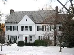 In 1917 Stevens and his wife moved to 210 Farmington Avenue, where they remained for the next seven years and where he completed his first book of poems, Harmonium.[15] From 1924 to 1932 he resided at 735 Farmington Avenue.[16] In 1932 he purchased a 1920s Colonial at 118 Westerly Terrace, where he resided for the remainder of his life.[16] According to Mariani, Stevens was financially independent as an insurance executive by the mid-1930s, earning "$20,000 a year, equivalent to about $350,000 today [2016]. And this at a time (during The Great Depression) when many Americans were out of work, searching through trash cans for food."[17] Harriet Monroe, reviewing Harmonium for Poetry, wrote: "The delight which one breathes like a perfume from the poetry of Wallace Stevens is the natural effluence of his own clear and untroubled and humorously philosophical delight in the beauty of things as they are."[1]