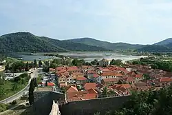 The Walls of Ston (Croatian: Stonske zidine) are a series of defensive stone walls, originally more than 7 kilometres (4.3 mi) long, that surrounded and protected the city of Ston, in Dalmatia, part of the Republic of Ragusa, in what is now southern Croatia.[1] Their construction was begun in 1358.[2] On the Field Gate of the Walls (Poljska vrata) there is a Latin inscription which dates from 1506. Today, it is among the longest preserved fortification systems in the world.[3]