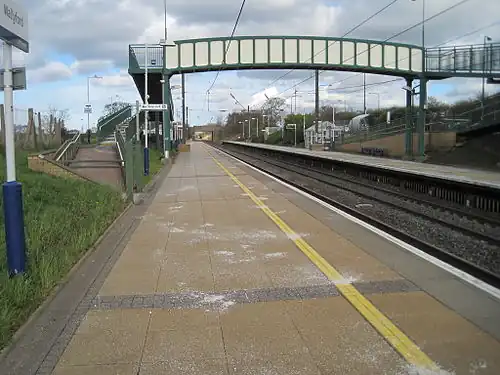 Wallyford railway station is a railway station serving the village of Wallyford, East Lothian near Musselburgh in Scotland. It is located on the East Coast Main Line, 7+1⁄2 miles (12.1 km) east of Edinburgh Waverley. It was opened by Railtrack in 1994 and is served by trains on the North Berwick Line.