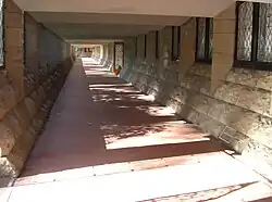 Other work the Griffins did during this time included the Melbourne subdivisions of Glenard[16] (where the Griffins built their own Knitlock house "Pholiota") and Mount Eagle[17] at Eaglemont, and the Ranelagh Estate in Mount Eliza Victoria 1924. The Ranelagh Estate was listed on the Victorian State Heritage Register (H01605) in 2005 as a significant example of a country estate. Prior to 1920 the Griffins also designed the New South Wales towns of Leeton and Griffith.[18] Griffin and architect J Burcham Clamp designed a large tomb built at Waverley Cemetery, Sydney, between 1914 and 1916 for James Stuart, which still stands as a good example of Griffin's sense of 'human-scale monumentality'.[19]