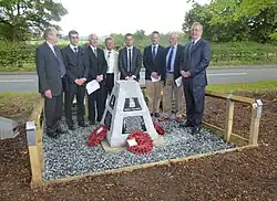 • Walter Churchill relocated his engineering business, JJ Churchill, from Coventry to Market Bosworth during the war. After the Market Bosworth Historical Society became aware of the wartime gallantry of not just Walter, but also of his brothers Peter and Oliver, it decided to fund a Memorial Cairn. The granite Cairn is located in front of the JJ Churchill factory, and was unveiled in autumn 2015. Three of the four sides commemorate each of the Churchill brothers, while the fourth side commemorates the factory’s relocation from Coventry to Market Bosworth and Walter Churchill landing his Hurricane in the field opposite while overseeing the factory’s move.