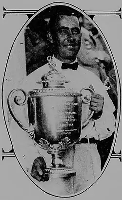 Hagen won the U.S. Open twice, and in 1922 he became the first native-born American to win The Open Championship, and won the Claret Jug three more times.[4] He also won the PGA Championship a record-tying five times (all in match play), and the Western Open five times when it had near-major championship status. Hagen totaled 44 PGA wins in his career, and was a six-time Ryder Cup captain.