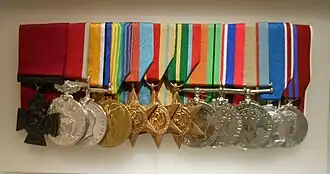 Peeler died at his home in South Caulfield, Victoria, on 23 May 1968. Survived by his second wife, Kathleen, and his four remaining children, he was buried in Brighton Cemetery. Kathleen died the following year.[3][18] Peeler is commemorated in the Victorian Garden of Remembrance, and a soldiers' club in Casula, New South Wales, bears his name.[31] His Victoria Cross and other medals are on display in the Hall of Valour at the Australian War Memorial in Canberra.[34]