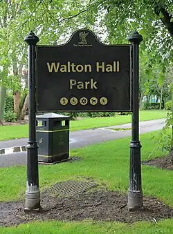 Walton Hall Park in Walton, Liverpool, England is a 130-acre (0.53 km2) park. It was opened to the public on 18 July 1934 by King George V when he visited Liverpool to open the Queensway Tunnel. The origins of the park date back to Henry de Walton, steward of the West Derby hundred in 1199.